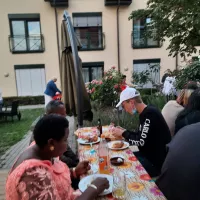 Es gab lecker Wurst und Fleisch vom Grill und viele Mitarbeiter / Innen brachten selbstgemachte Salate und Nachtisch mit.