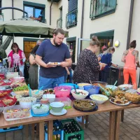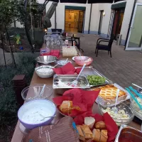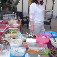 Es gab lecker Fleisch vom Grill und viele Mitarbeiter / Innen brachten selbstgemachte Salate und Nachtisch mit.