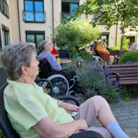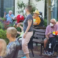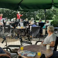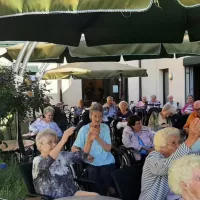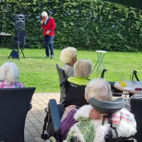„Schwarzbraun ist die Haselnuss“, „Blau blüht der Enzian“ schallte es am 18.07.2021 durch den Garten der Seniorenresidenz.