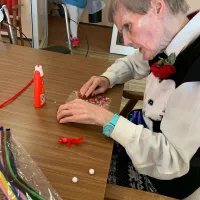 Sie bastelte gemeinsam mit unseren Bewohner- / Innen Osterhasen aus Pfeifenreiniger.