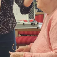 Zweimal im Jahr kommt eine Mitarbeiterin vom Brillenmobil zu uns in die Seniorenresidenz.