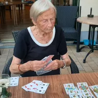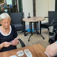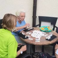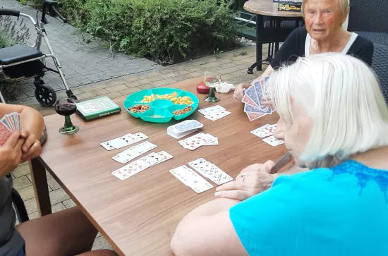 Bei angenehmen Außentemperaturen und einem Gläschen Sekt wurden auf der Terrasse der Seniorenresidenz verschieden Gesellschaftsspiele gespielt.