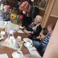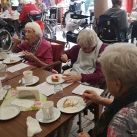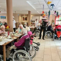 Es gab Erdbeerkuchen und Maibowle und unsere Bewohner- / Innen genossen mal wieder einen ausgelassenen musikalischen Nachmittag.