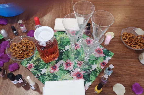 Es gab Hand- und Fußbäder, Gesichtsmasken und -massagen und Fingernägel wurden lackiert.