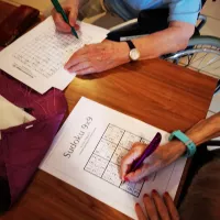 Thementag "Gehirnjogging" An die grauen Zellen ging es am 11.08.2020 zum Thementag „Gehirnjogging“. Es wurden Kreuzworträtsel und Sudokus gelöst, Sprichwörter ergänzt und Zahlen geordnet. Am Ende des Tages rauchte so mancher Kopf unserer Bewohner. Zurück