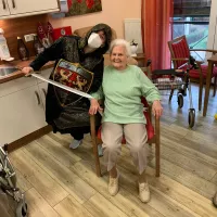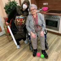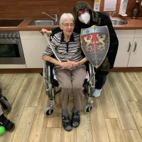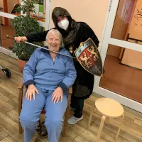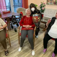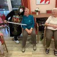 Unsere Bewohner- / Innen staunten nicht schlecht und wollten sich direkt mit dem Ritter fotografieren lassen.