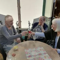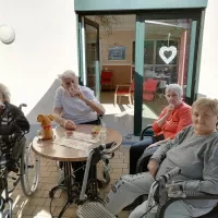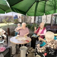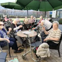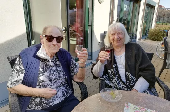 Das Highlight des Thementags war aber die Weinverkostung bei 27 Grad auf der Terrasse. Viele unserer Bewohner- / Innen fanden sich dort ein und genossen gemeinsam die verschiedenen Weine zusammen mit Weintrauben und Käse.