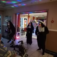 Unsere Mitarbeiter aus der Betreuung, sowie unsere Einrichtungs- und Pflegedienstleitung verkleideten sich als bekannte Sänger und Sängerinnen und präsentierten bekannte Weihnachtslieder.