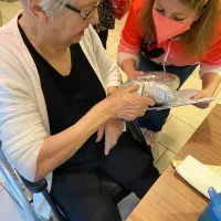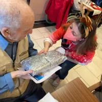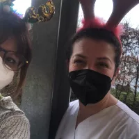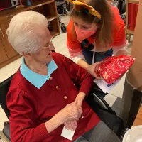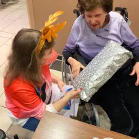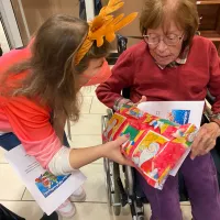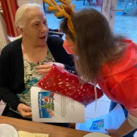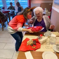 Unsere Einrichtungsleitung Frau Isabel Escoz stimmte zum Singen von Weihnachtsliedern an und verteilte an alle Bewohner die Weihnachtsgeschenke.