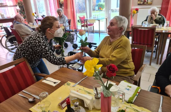 Auch wir haben zum Tag der Frau an unsere Damen gedacht und somit hat jede Mitarbeiterin und Bewohnerin von unserer Einrichtungsleiterin Frau Isabel Escoz persönlich eine Rose überreicht bekommen.