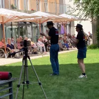 Linedance-Duo Das Ehepaar Schommer- Gülpen stellte uns ihr Linedance Programm im sommerlichen Ambiente unseres Residenzgartens vor. Bei Erfrischungsgetränken, beschwingter Musik und Tanzeinlagen genossen wir diesen wunderschönen Tag. Zurück