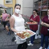 hat ein ereignisreiches und erlebsames Wochenende hinter sich. In unserer Einrichtung war seit knapp 3 Jahren wieder Halligalli auf der Straße und die Marktgesellschaft ließ es sich nicht nehmen uns ihren traditionellen Umzug mit bekanntem "Hahnstätter Schrei" zu präsentieren. Unsere Bewohnerinnen und Bewohner waren gespannt und voller Vorfreude und versammelten sich für dieses Spektakel im Hof für den besten Blick. Unser Team der Betreuung versorgten alle mit Eis, Popcorn, Zuckerwatte und bereitgestellen Fingerfood. Zum Abendbrot gab es Schnittchen mit alkoholfreien Bier und Sekt.