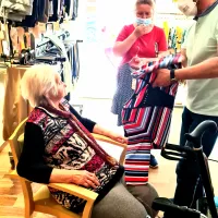 Einige Bewohner/innen präsentierten ihre neue Kleidung direkt beim Mittagessen oder Kaffee trinken. Sie waren sichtlich glücklich und stolz auf ihre neuen Errungenschaften !