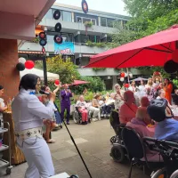 Jedes Jahr aufs neue feiern wir mit all unseren Bewohnern und deren Angehörigen unser Sommerfest. Ganz getreu dem Motto 50er Jahre hatten wir unseren Elvis Sänger Shezad vor Ort der mächtig für Stimmung sorgte. Auch für das leibliche Wohl war wie immer gesorgt. Wir freuten uns über die zahlreichen Besucher, welche mit ihren Angehörigen und uns gemeinsam feierten. Auch der kurze Regenschauer konnte die Stimmung nicht kippen.