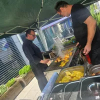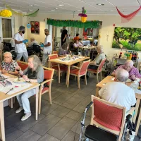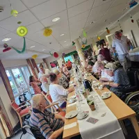Unser Sommerfest 2025 . Einen schöneren Tag hätte man nicht bekommen können . Die Sonne lachte mit unseren Bewohnern und Angehörigen um die Wette. Beste und ausgelassene Stimmung bei vollen Wohlfühlprogramm . Los ging es Mittags mit einem Grillfest . Dort warteten leckere Salate und natürlich gegrillte Köstlichkeiten . Gertränke nach Wahl und frische Melonen 🍉 sorgten für die Frische . Zufrieden und nach einer Mittagspause ging es um 15.00 Uhr so richtig los . Unser Musiker sorgte für die musikalische Stimmung und in den Pausen sorgte der " Kaiser " für musikalische Stimmung . Frisch gebackener Pflaumenkuchen , oder erst ein Gläßchen Sekt ? Unser Sektempfang begrüßte und verwöhnte jeden Gast der am heutigen Tag zu uns kam . Eine rießige Getränkeauswahl mit erlesenen Weinen ließen keinerlei Wünsche offen . Gemäß unseren diesjährigen Motto " The 60 th; Flower Power " gab es das volle Liebesprogramm mit leckeren Cocktails , gemischt mit dem Gefühl der Karibik im HIntergrund . Für den Snack zwischenduch gab es unsere Melonenbar und unsere Popcornmaschine freute sich über regen Besuch . Selbstgemachte Hot Dogs und Fleichkäse Brötchen zeigten sich größter Beliebtheit . Gesungen , gelacht , genossen . Unser Sommerfest 2025 , ein Fest welches zusammen mit unseren Gästen noch lange in Erinnnerung bleiben wird.