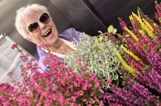 In einem Meer von Erika Blumen , einem Heidekraut war unsere Bewohnerin von der Schönheit und der frohen Farben welche der Herbst zu bieten hat sichtlich erfreut. Und so beginnt eine einzigartige Zeit der Verwandlung und damit auch die beginnende Vorfreude auf Weihnachten . Bunt und farbenfroh , zusammen Lachen und Spaß haben. Zu Hause sein und sich wohlfühlen . Familie hat einen Namen . DOREAFAMILIE Hattersheim.