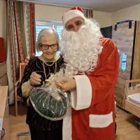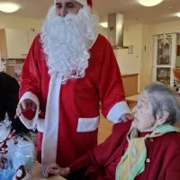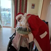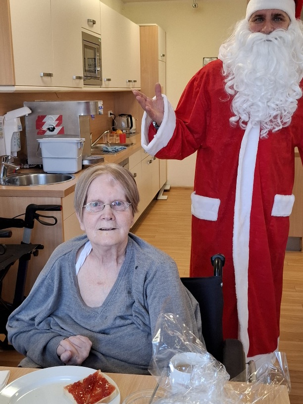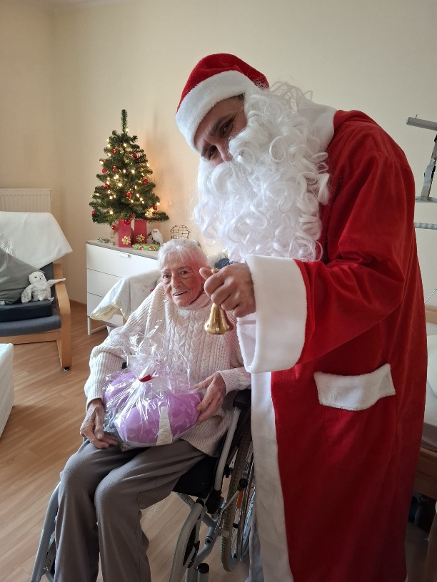 Unsere Bewohnerinnen und Bewohner empfingen ihn mit Lächeln, Staunen und herzlichem Applaus. Jeder Gruß, jedes freundliche Wort und jedes überreichte Geschenk sorgte für bewegende Momente und weckte schöne Erinnerungen an vergangene Weihnachtsfeste. Die liebevolle Aufmerksamkeit ließ spüren, dass an diesem Tag niemand vergessen wurde.