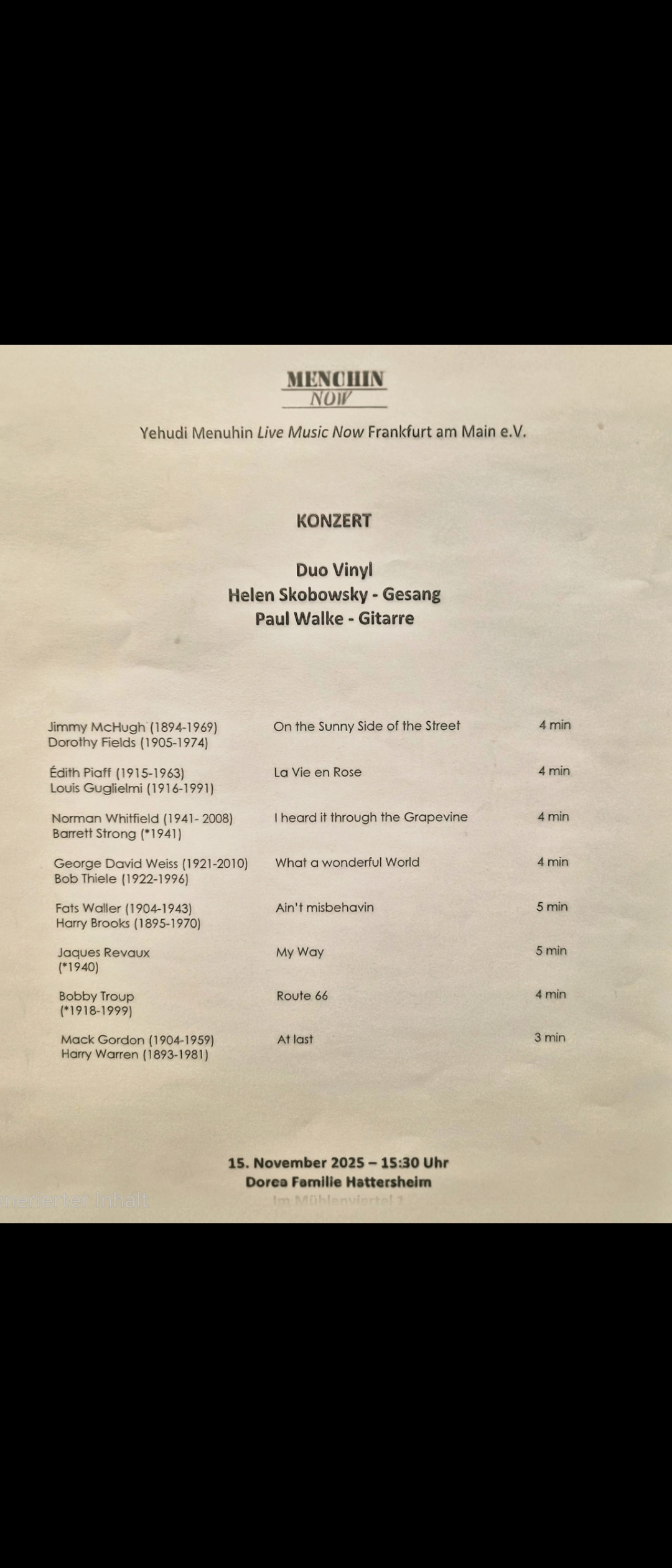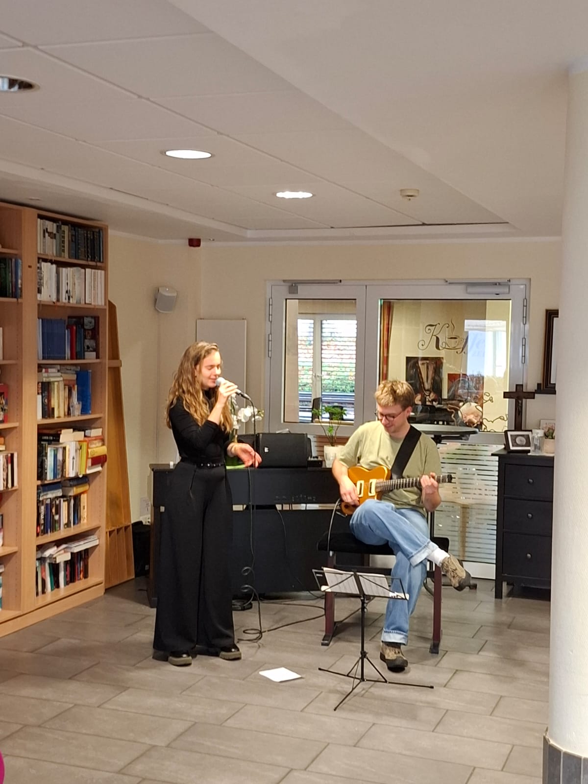 Große Momente in Hattersheim . Zu Gast heute das Klassik Duo "Vinyl" , die einen Auzug aus ihren Prgramm unseren Bewohner*innen vortrugen . So ein schönes und bedeutungsvolles Ereigniss wurde selbstverständlich zelebriert . Mit einem Sektempfang und kleinen Pumpernickel Bon Bons genoss man die Vorfreude um so mehr . Langer Applaus für unsere Gäste und natürlich eine Zugabe verschönerten diesen Samstag Nachmittag auf aller höchsten musikalischen Niveau . So macht Kultur Spaß, hier bei uns in Hattersheim.