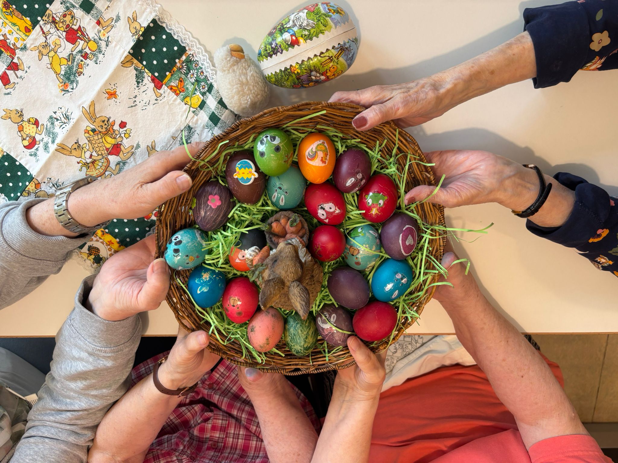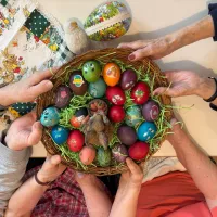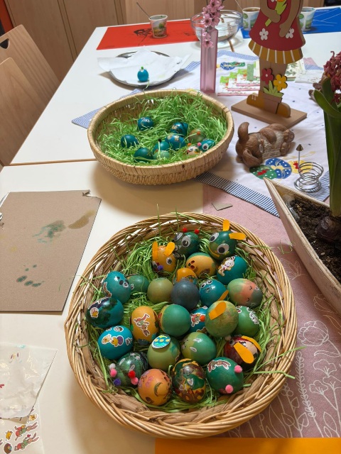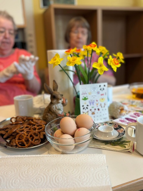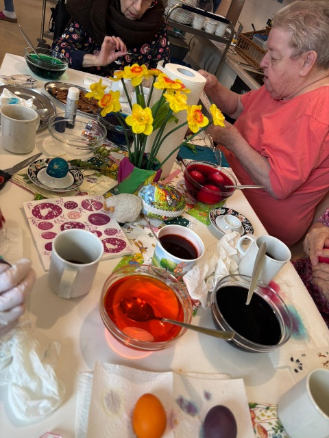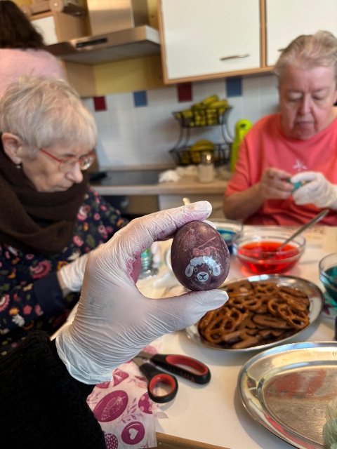 Gemeinsam wurden Eier in leuchtende Farben getaucht, verziert und bewundert. Dabei ging es nicht nur um das Ergebnis, sondern vor allem um die kleinen Momente des Miteinanders: ein Lächeln hier, ein gemeinsames Lachen dort, helfende Hände und strahlende Gesichter auf beiden Seiten.