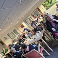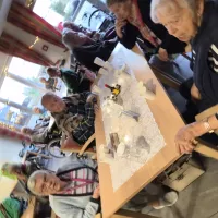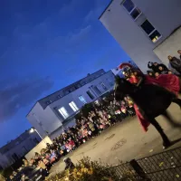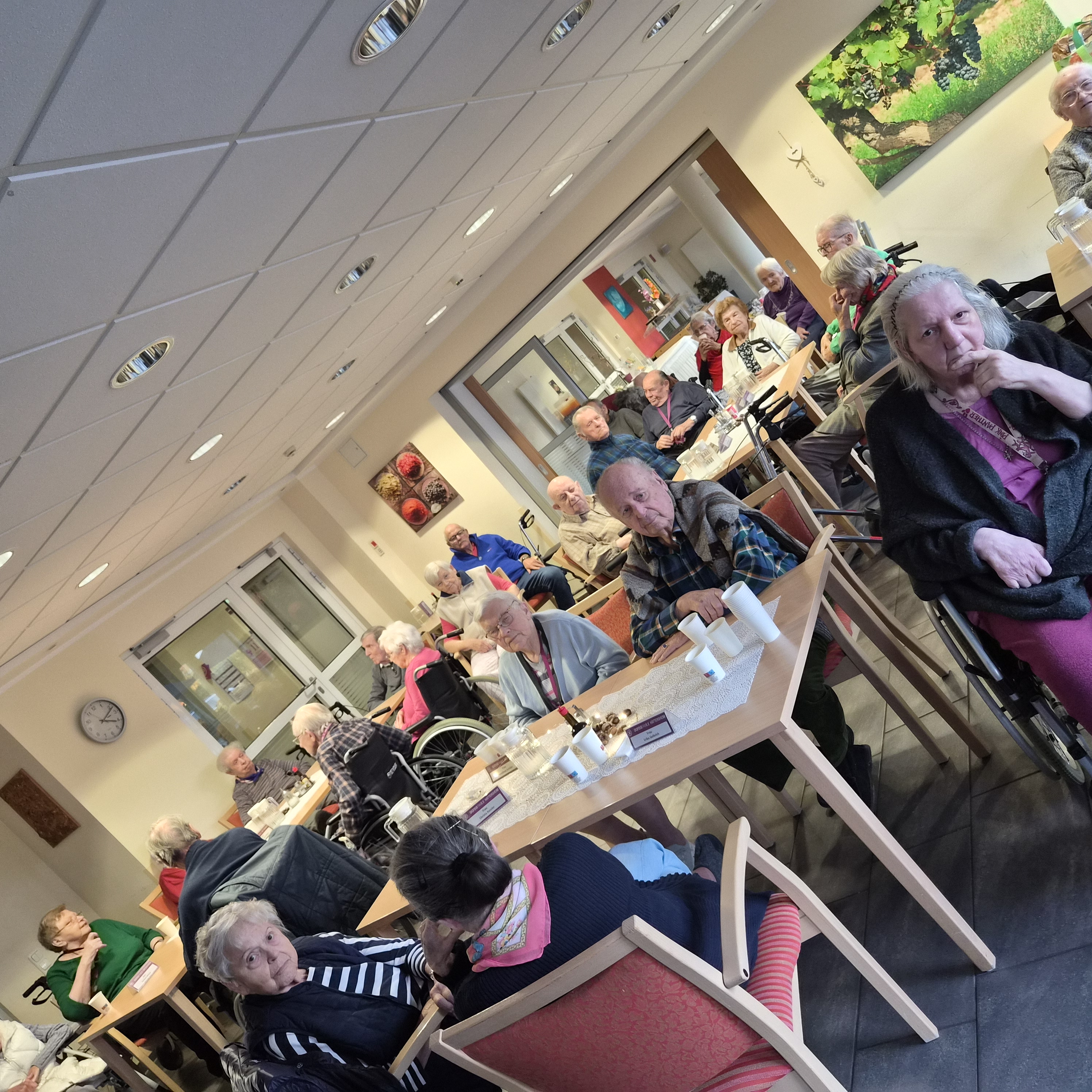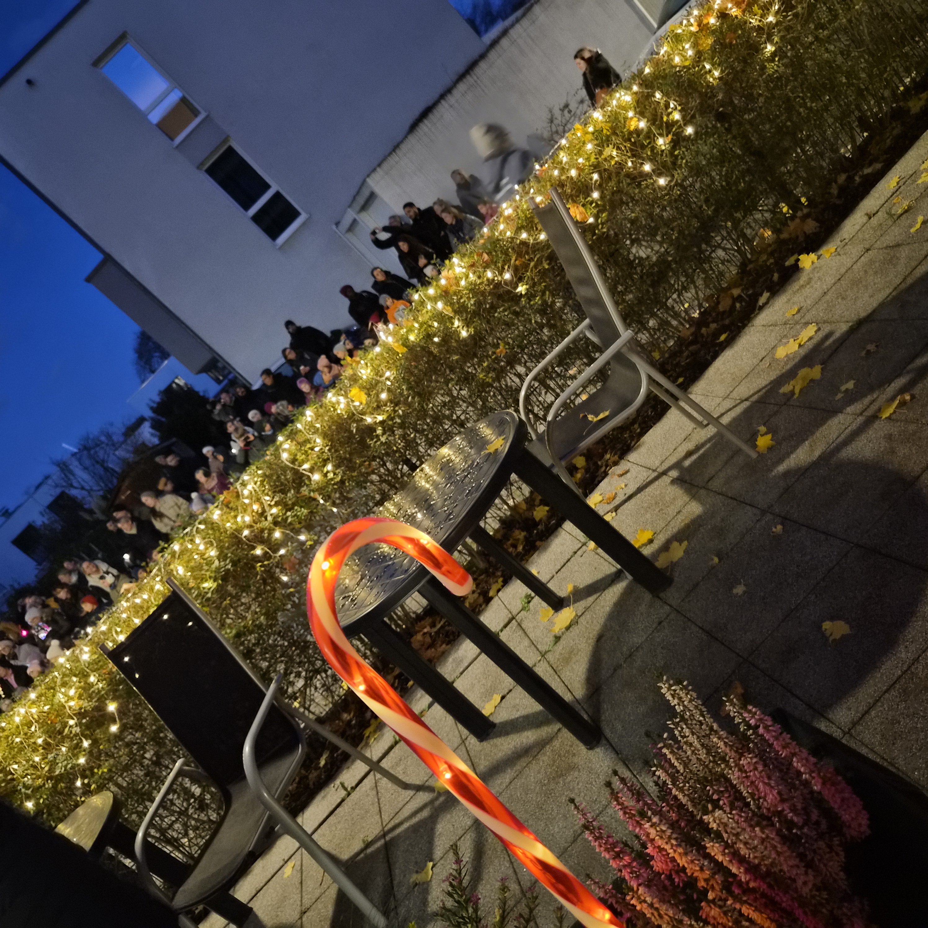 Der Tag hätte nicht besser sein können . Sonne 🌞 den ganzen Tag und dazu milde Temperaturen .Der Tag stand heute im Zeichen von Sankt Martin . Und um.17.30 , empfingen wir ihn hoch zu Ross. Zusammen mit der Kita Sonnenschein und einem Meer an Laternen und Lichtern sangen wir alle Sankt Martin Lieder. Wundervolle Stimmung , dazu genossen unsere Bewohner*innen Glühwein, Lebkuchen Gebäck und natürlich gab es eine Bratwurst im knusprigen Brötchen . Eine Weihnachtsmarkt ähnliche Stimmung . Unser Sankt Martinstag am 11.11.2025 .