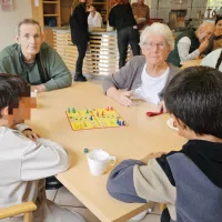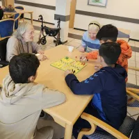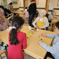 Das war das Motto am Vormittag des 29.10.24. Bereits zum dritten Mal hatten wir Besuch von Grundschülern der Schule im Süden in Köln um gemeinsam zu spielen. Zum Einstieg trugen die Kinder freudvolle Lieder vor, so dass nicht nur die Kinderaugen leuchteten! Bei Gebäck und Kakao nahm man sichtlich die herzliche Stimmung unter den Kindern und Senioren wahr.