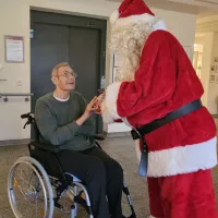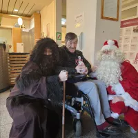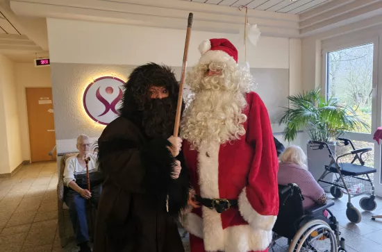 Heute wurden unsere Bewohner von hohem Besuch überrascht. Der Nikolaus war mit kleinen Leckereien im Gepäck bei uns im Haus und hatte natürlich für den Falle des Falles auch seinen Knecht Ruprecht dabei.