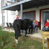 Pferdebesuch bei uns in Blumenrod An diesem Wochenende hatten wir ein ganz besonderen Besuch. Ein Pferd stand bei uns im Garten. Wir konnten es streicheln und füttern. Dies weckte bei einigen alte Erinnerungen wach und sorgte auch noch nach Tagen für Gesprächsstoff. Zurück