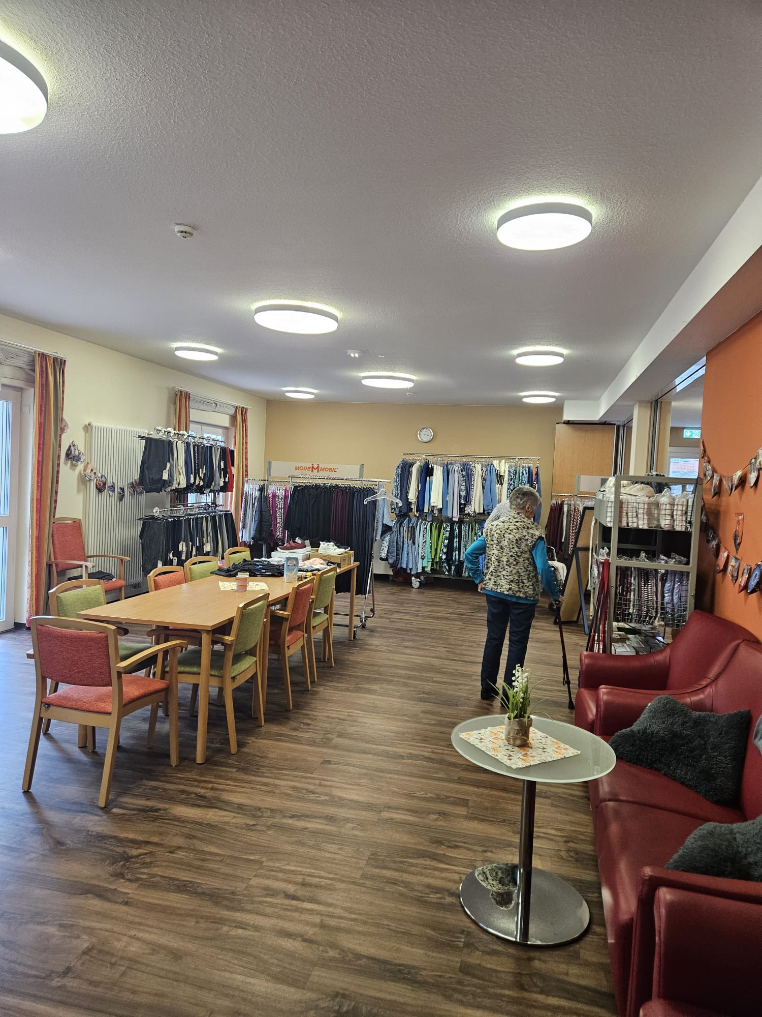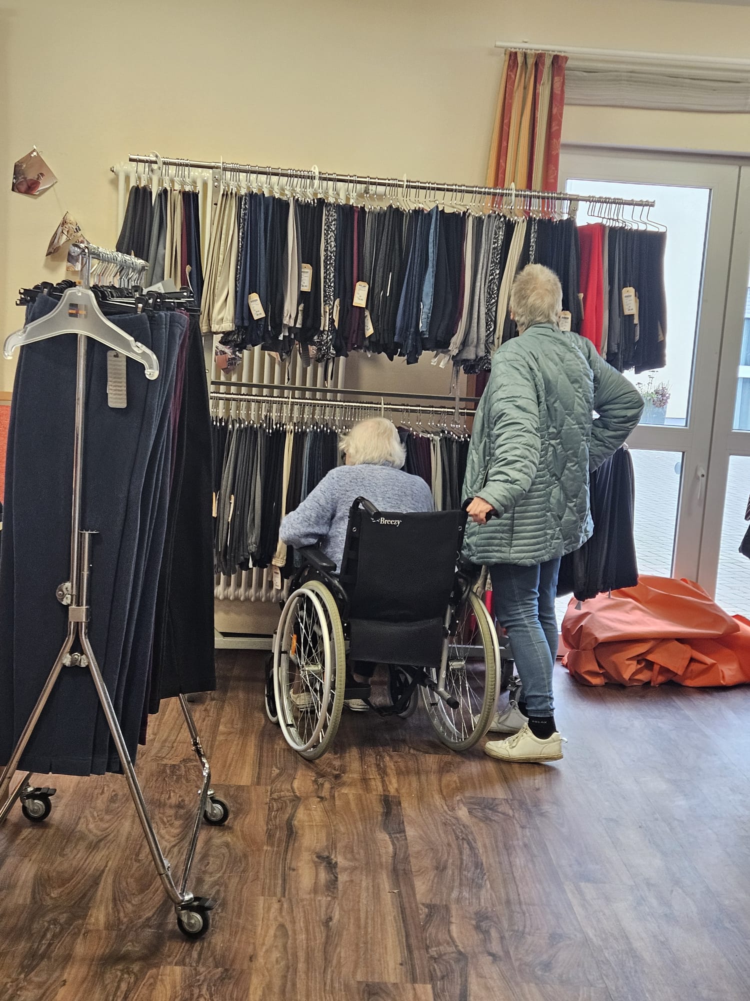 Unsere Bewohner hatten die Gelegenheit, Bekleidung aus dem vielfältigen Angebot auszuwählen, anprobieren zu können und schließlich in einem entspannten Rahmen zu kaufen. Für viele bedeutet der Weg in die Stadt eine große Anstrengung – umso wertvoller war es, dass wir bequemen, persönlichen Service direkt vor Ort genießen durften.