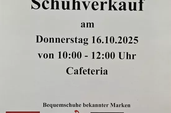 Wir freuen uns, Ihnen eine besondere Service-Veranstaltung in unserem Pflegeheim ankündigen zu dürfen: Die Schuh Residenz kommt zu uns, damit unsere Bewohner bequem vor Ort hochwertige Schuhe kaufen können.