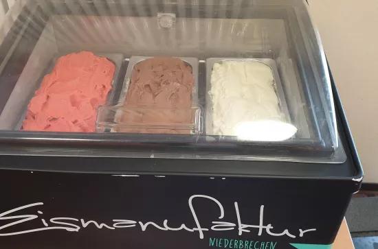 Kaum hieß es: "Es gibt Eis von der Eismanufaktur Niederbrechen", waren schon Bewohner:innen und Mitarbeiter:innen nicht mehr zuhalten. Das Eis hatten wir zu unserem Tag der offenen Tür mit Ostereiersuche bestellt und konnten glücklicherweise auch noch am nächsten Tag davon naschen.