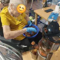 Unsere Pflegedienstleitung brachte eine Auswahl an frischen Früchten aus ihrem Garten mit, die gemeinsam zu köstlichem Gelee verarbeitet wurden. Es war eine wunderbare Gelegenheit für unsere Bewohner, die Früchte zu probieren und den kreativen Herstellungsprozess hautnah zu erleben.
