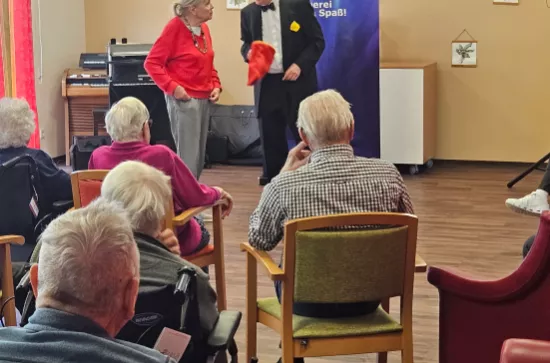 Die interaktive Show begeisterte die Bewohner. Es wurde viel gelacht, gestaunt und zwei Bewohnerinnen wurden sogar prompt zu Zauberassistentinnen.