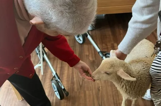 Muttertag mit Ehrengästen 15.05.2023 Nachdem unsere BewohnerInnen selbstgebackene Muffins zum Kaffee an Muttertag bekamen, durften sie sich danach noch auf tierischen Besuch freuen. ❤🐑 Zurück
