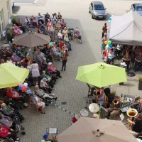 Begleitet wurde das Fest von der Polizeikapelle. Die BewohnerInnen tanzten, sangen und schunkelten mit.