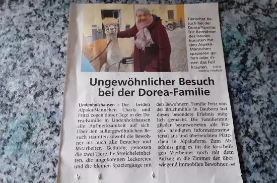 Zeitungsartikel - Alpakabesuch 29.12.2022 Wir haben es in die Nassauische Neue Presse (NNP) geschafft und dort den Besuch unserer wolligen Freunde festgehalten. Wir freuen uns schon auf das nächste Wiedersehen! Zurück