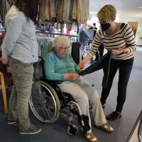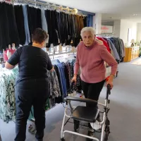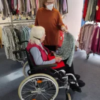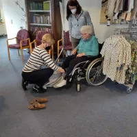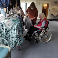 Beladen mit etlichen Rollständern, angefüllt mit saisonalen Kleidungsstücken, wird die Ankunft des Mobils von unseren Bewohnern schon freudig erwartet. Nachdem die Verkäuferinnen alles so schön wie in einem echten Kaufhaus aufgebaut haben, kann das Shoppen nach Herzenslust losgehen...