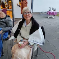 Die Damen und Herren konnten sich in warme Decken kuscheln und wurden mit Brot und heißen Würstchen verköstigt.