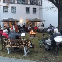 Bei klarem Himmel und Mondschein wurden Feuerschalen entzündet und warme Getränke gereicht.