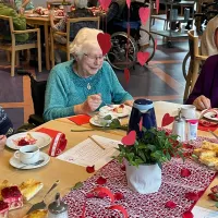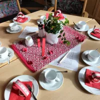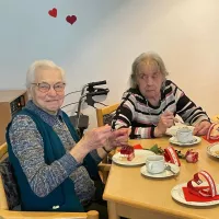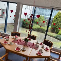 Der Valentinstag wurde am Nachmittag gemeinsam im Speisesaal gefeiert. Mit Liedern, Gedichten und Geschichten über die Liebe. Der Saal war liebevoll geschmückt mit wunderschönen Rosen und Herzen für unsere Bewohner/innen zum Mitnehmen. Abgerundet wurde das Fest durch leckeren Kaffee und Kuchen.