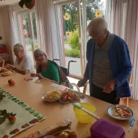 Selbstverständlich essen unsere Bäcker nicht alles allein auf, sondern verteilen den Kuchen auch noch an andere Bewohner.