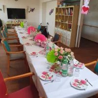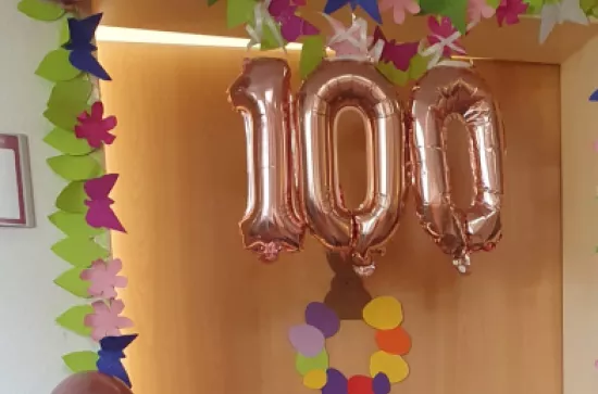 Am Samstag ist unsere Bewohnerin Frau P. 100 Jahre geworden. Zu diesem besonderen Ehrentag wurde sie mit einem liebevoll dekorierten Frühstückstisch überrascht.