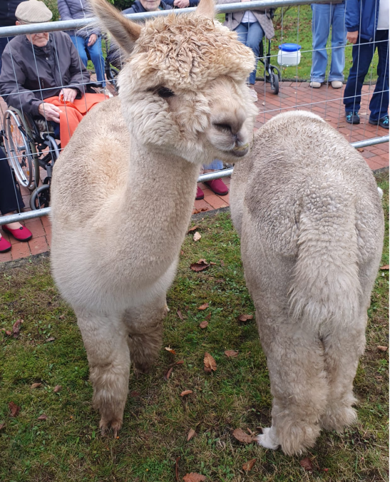 Gestern hatten wir Besuch von den Ammerland Alpakas und die beiden Alpaka Weibchen Donna Luna & Cassandra haben unsere Bewohner*innen, Angehörige und Mitarbeitende aus Pflege, Küche, Verwaltung und Betreuung regelrecht verzaubert ✨😍🙌 Es wurde ausgiebig gestreichelt, reichlich gefüttert und beobachtet.