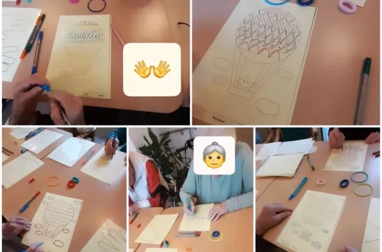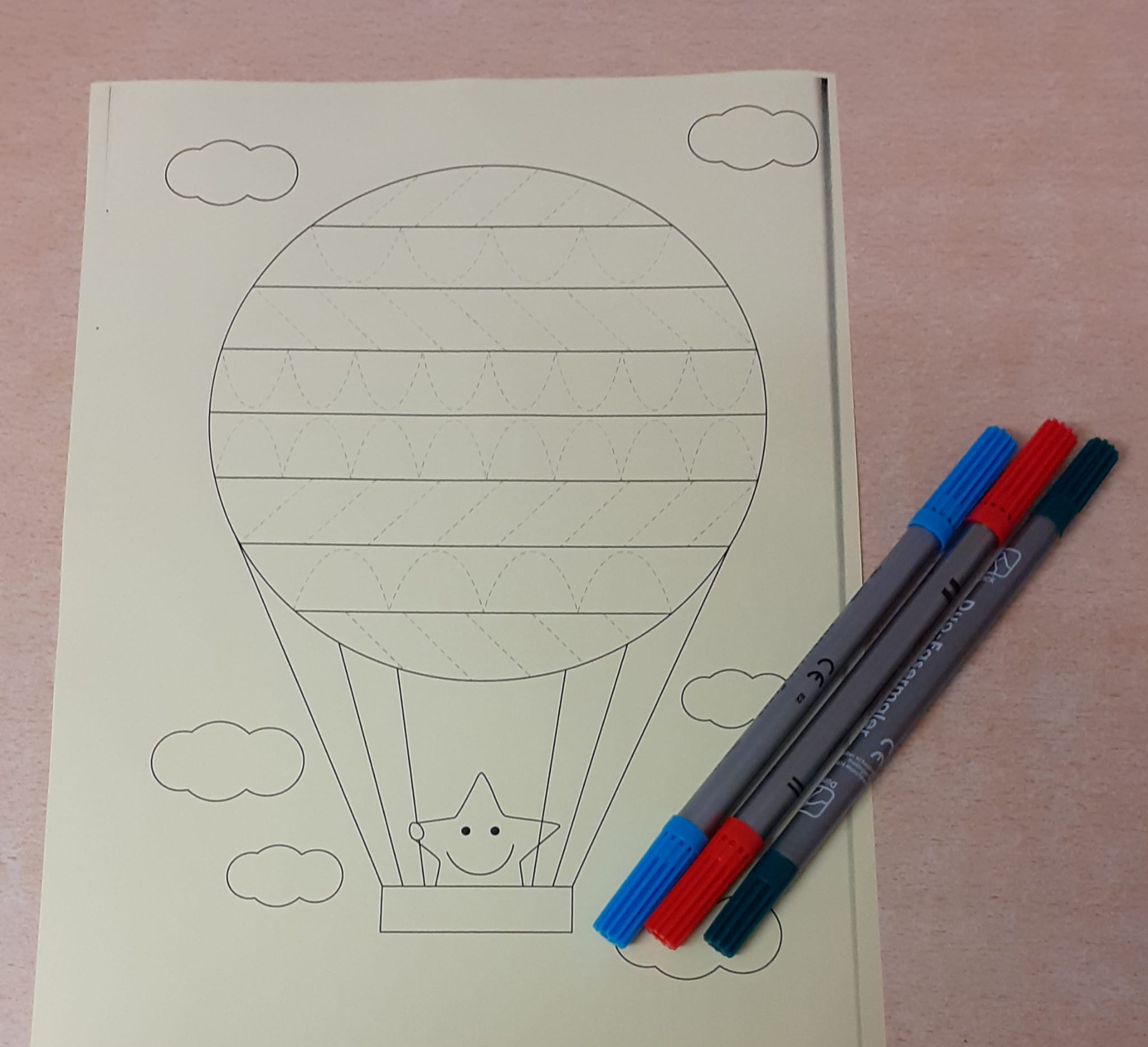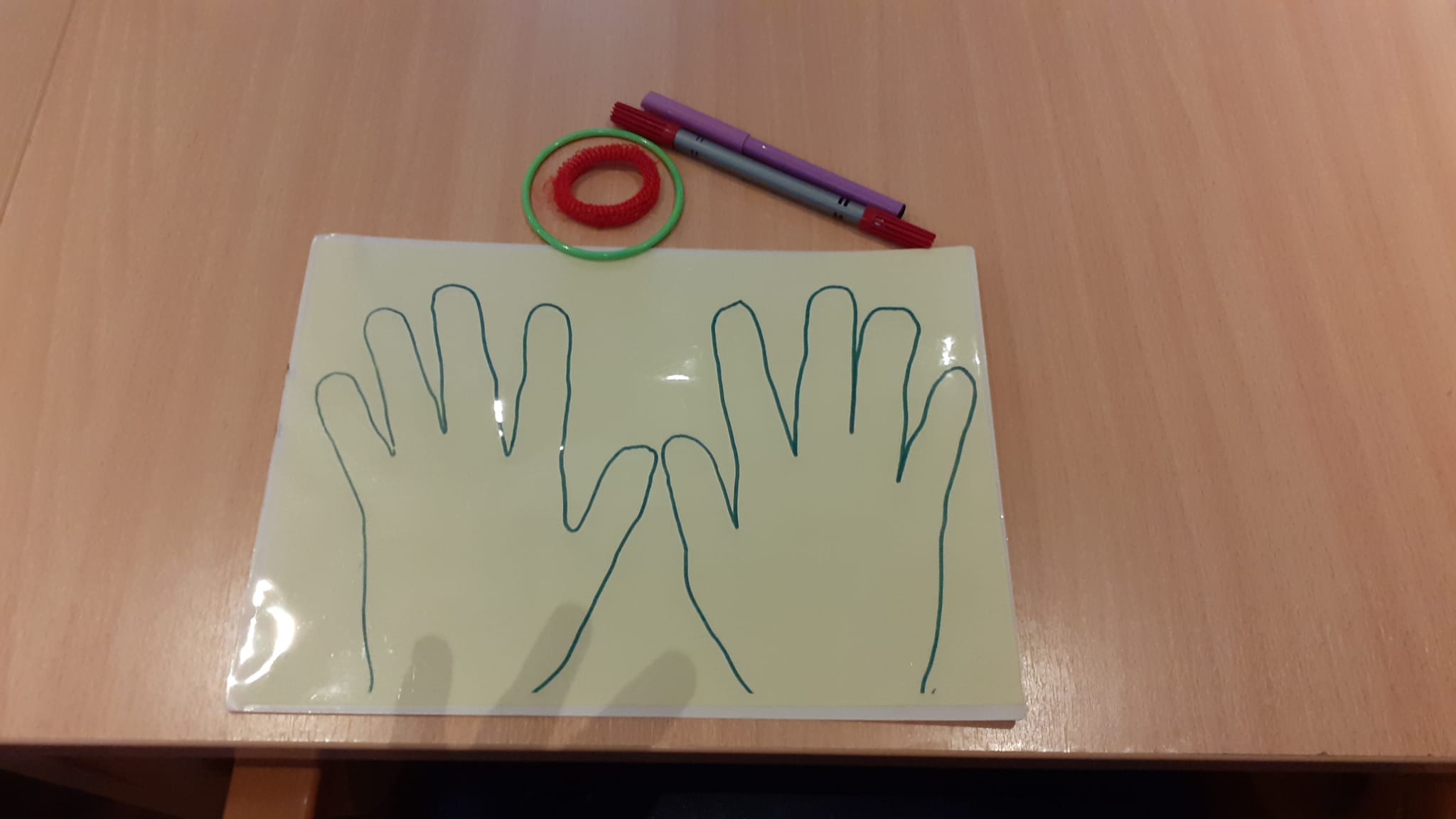 Ein Einblick in unser wöchentliches Handgymnastikangebot, bei dem die Handfunktion gefördert und die Feinmotorik sowie Hand-Auge-Koordination durch Nachzeichnen von Linien trainiert wird.