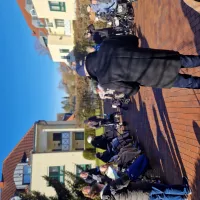 Gemeinsam mit unseren Bewohnerinnen und Bewohnern sowie einem gefüllten Bollerwagen ging es bei frostigen Temperaturen und strahlendem Sonnenschein los. Für unterwegs wurde eine Kegelstation aufgestellt, Eierlikör verteilt und ein Eierlauf veranstaltet, bei dem die Bewohnerinnen und Bewohner gegeneinander antreten konnten.