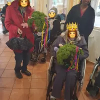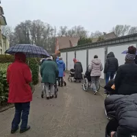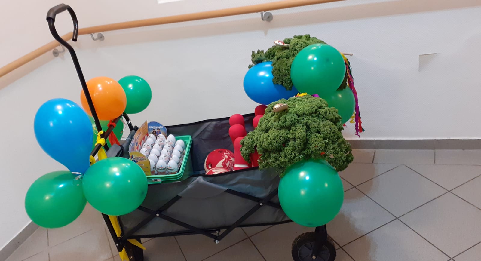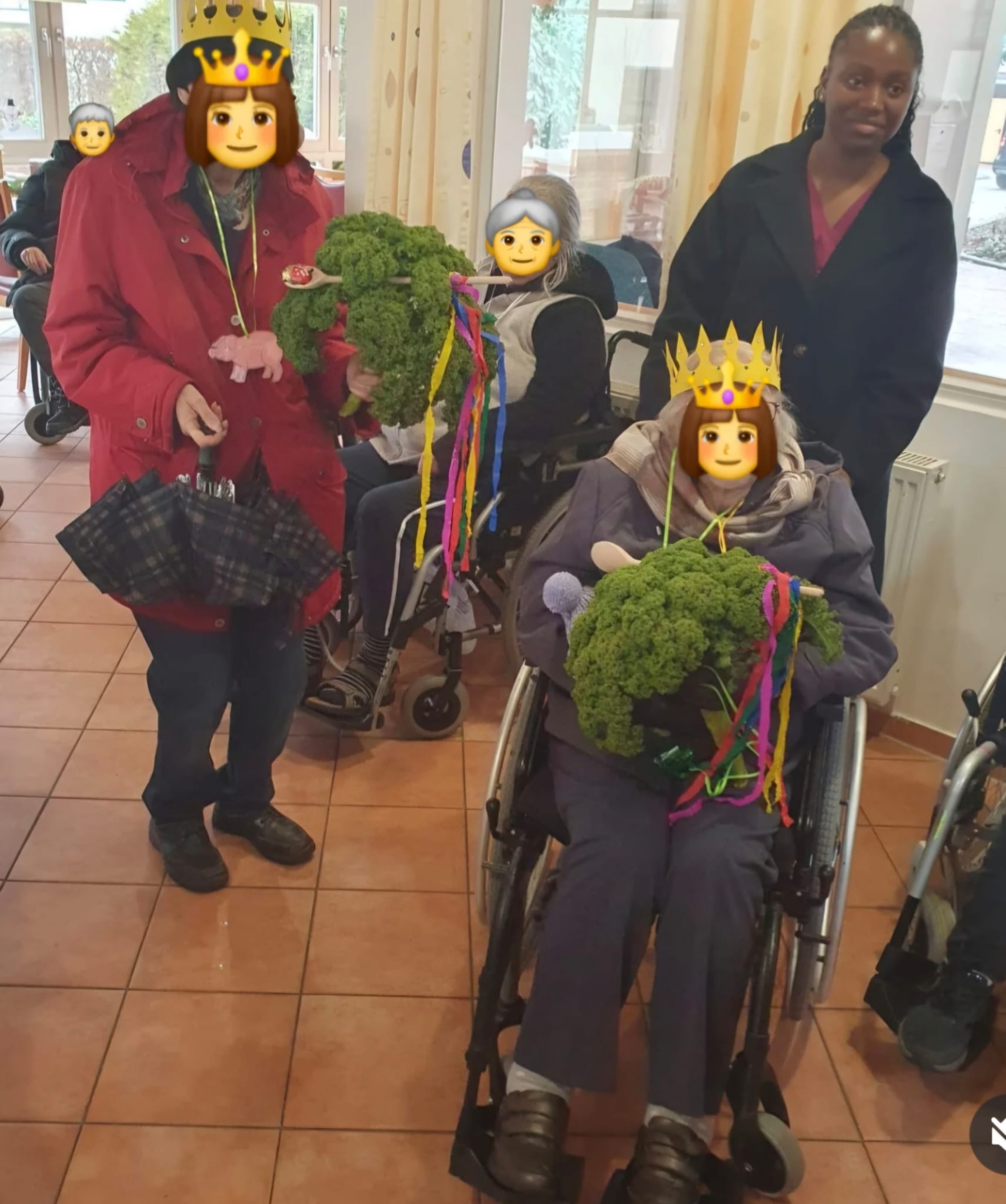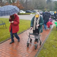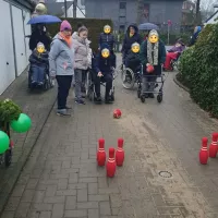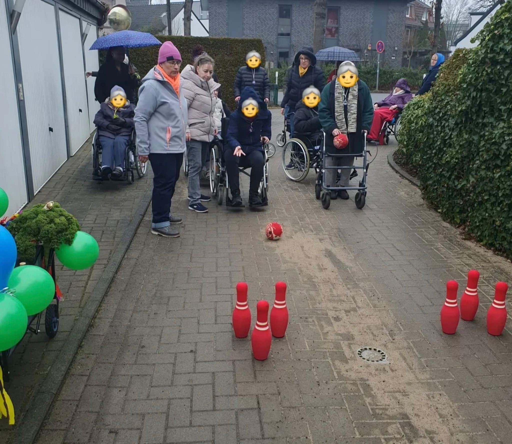 Der Nieselregen hat uns heute Vormittag nicht davon abgehalten, mit vollgepacktem Bollerwagen, Musik und guter Laune auf Kohltour zu gehen. Zu unserer Tradition gehören Kegeln, Eierlauf und Gummistiefel Weit- (bei einigen eher Hoch-)wurf, bei denen die Bewohnerinnen und Bewohner ihr Können unter Beweis stellen und um die Krone eifern können. Zurück im Trockenen wurde noch das diesjährige Kohlköniginnenpaar gekürt und Eierlikör genossen. Aus unserer Küche gab es zum Abschluss einen leckeren Teller Grünkohl.