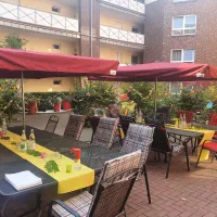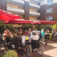 Vergangenen Dienstag fand unser diesjähriges Sommerfest bei hitzigen Temperaturen im Innenhof statt. Hierzu wurden schattige Sitzplätze vorbereitet, eine erfrischende Sommerbowle serviert, gemeinsam gesungen und gelacht. An verschiedenen Spielestationen konnte das eigene Wurfglück herausgefordert und in der Pool-Ecke für Abkühlung gesorgt werden. Zum Mittagessen gab es Grillwürsten, Salate, gefüllte Kartoffeln mit Quark und zum Nachtisch bunte Obstspieße.