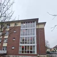 Für den heutigen Tag wurden die Wohnbereiche und Fenster der Wintergärten mit Herzen versehen. An einem verregneten Tag wie heute ist es ein farblicher Akzent für freudvolle Stimmung.