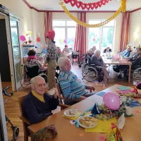 Die Bewohner der DOREAFAMILIE PEINE haben im Februar an zwei Tagen ausgiebig Fasching gefeiert. Die erste Feier fand im Therapieraum des WB 3 statt. Hierbei erfreute der Musiker Gigla die Anwesenden mit bekannten Liedern zum Mitschunkeln und Mitsingen. Die zweite Feier fand im Restaurant statt und hier sorgten die „Deelendanz“ für eine gute Stimmung. Des Weiteren lasen die Damen vom „BuSD“ (Beschäftigung und sozialer Dienst) lustige Geschichten vor, die alle Bewohner herzhaft zum Lachen brachten.