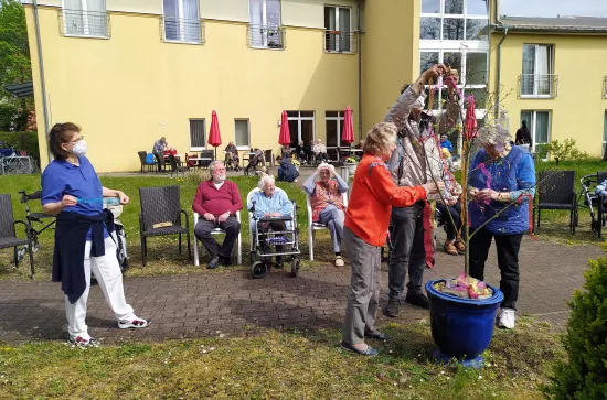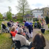 Am 01. Mai haben wir bei guter Stimmung und hervorragendem Wetter den Wonnemonat Mai begrüßt. In unserem wunderschönen Park wurde traditionell in liebevoller Arbeit der aufgestellte Maibaum geschmückt. Mit leckerer Maibowle verbrachten unsere Bewohner rund um den Baum wieder eine schöne Zeit.
