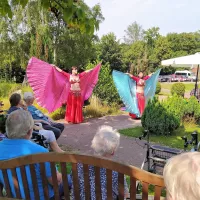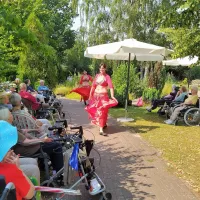 Das diesjährige Sommerfest unserer Bewohner zusammen mit den Angehörigen musste „Corona-bedingt“ leider ausfallen. Doch auf die Vorführung des Tanzduos „SiRa“ wollte die DOREAFAMILIE PEINE auch in diesem Jahr nicht verzichten. Wieder sorgten die beiden Tänzerinnen Simone und Rabea aus Hemmingen mit ihren orientalischen Bauchtänzen für eine Superstimmung. Die Bewohner klatschten begeistert mit und wurden bei schönstem Wetter mit erfrischenden Getränken versorgt, unter Beachtung der zurzeit allgemein geltenden Verhaltens- und Hygieneregeln.